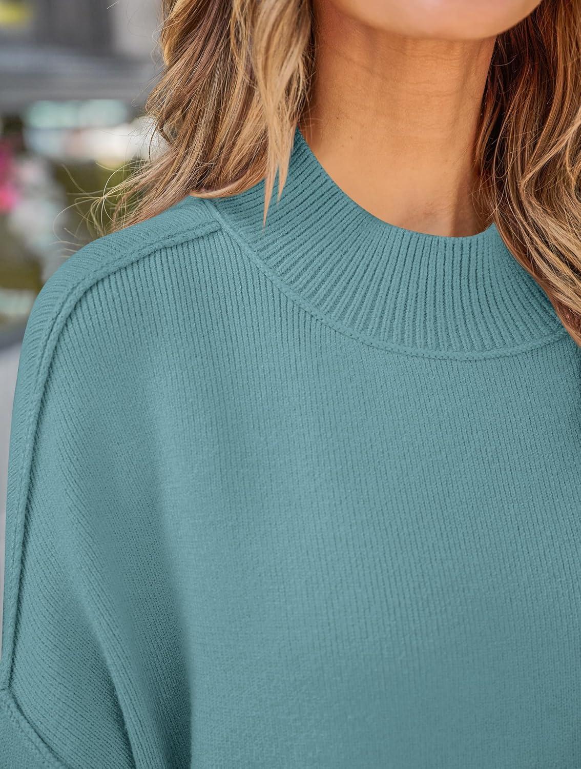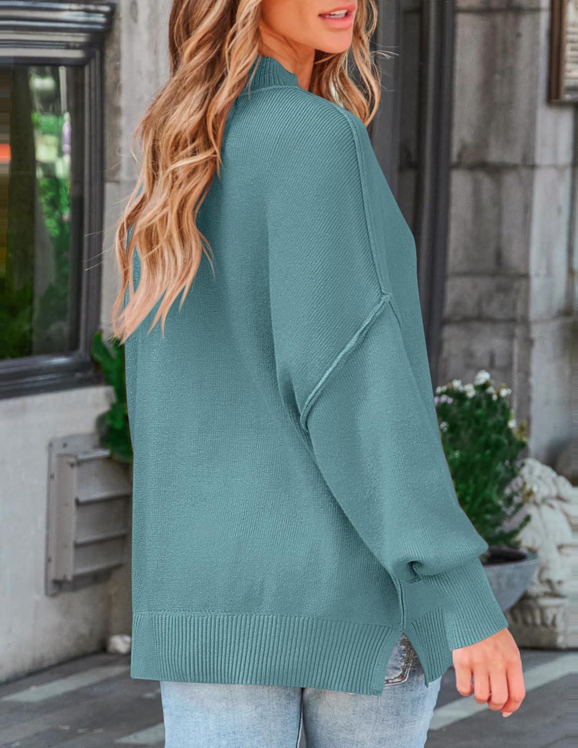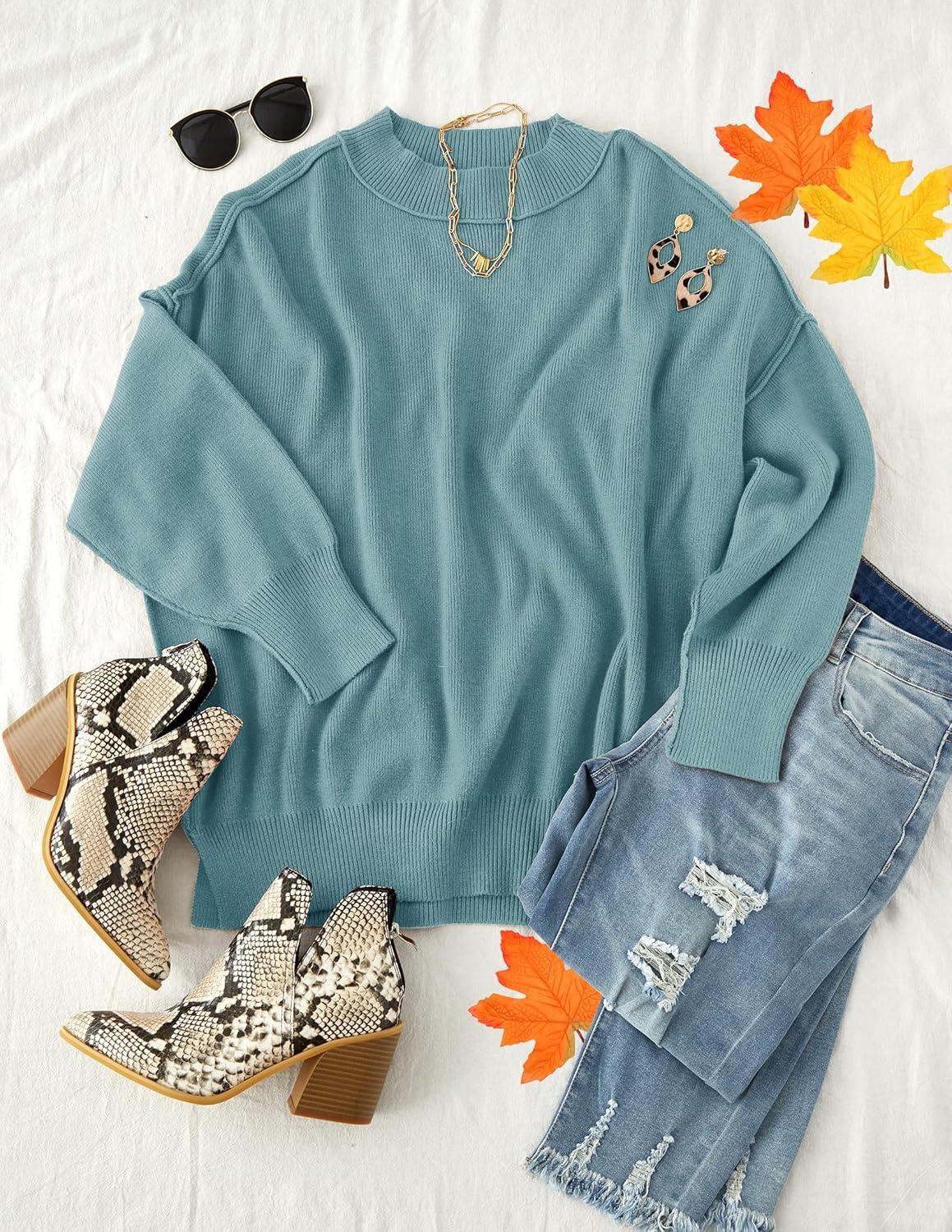 ZESICA Women’s Fall 2025 Casual Long Sleeve Crew Neck Side Slit Oversized Ribbed Knit Pullover Sweater Tops(Lake)