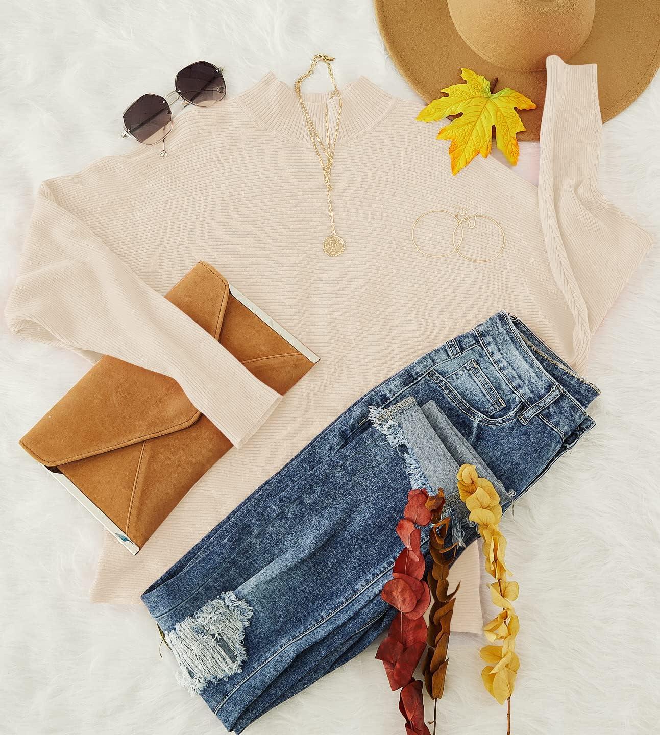 Don’t break the bank! Get the ZESICA Women’s Fall 2025 Turtleneck Batwing Long Sleeve Ribbed Knit Casual Soft Pullover Sweater Jumper Top(Apricot) you want at a price you can afford during our markdown sale.