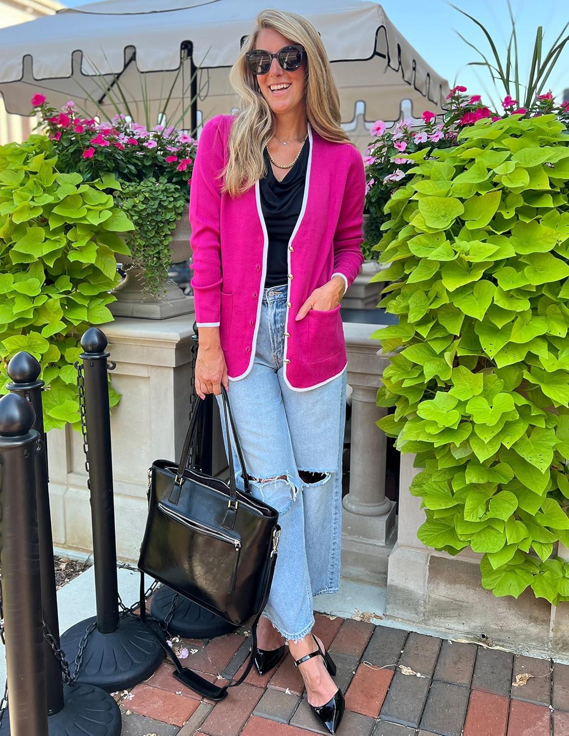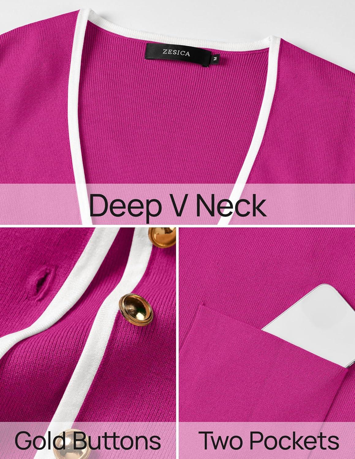 Be the first to review “ZESICA Women’s Fall Fashion Cardigan Sweaters Long Sleeve Button Open Front Color Block Coatigan with Pockets(Rose)”