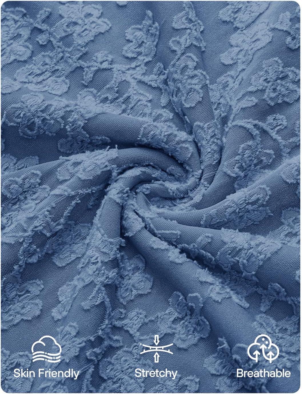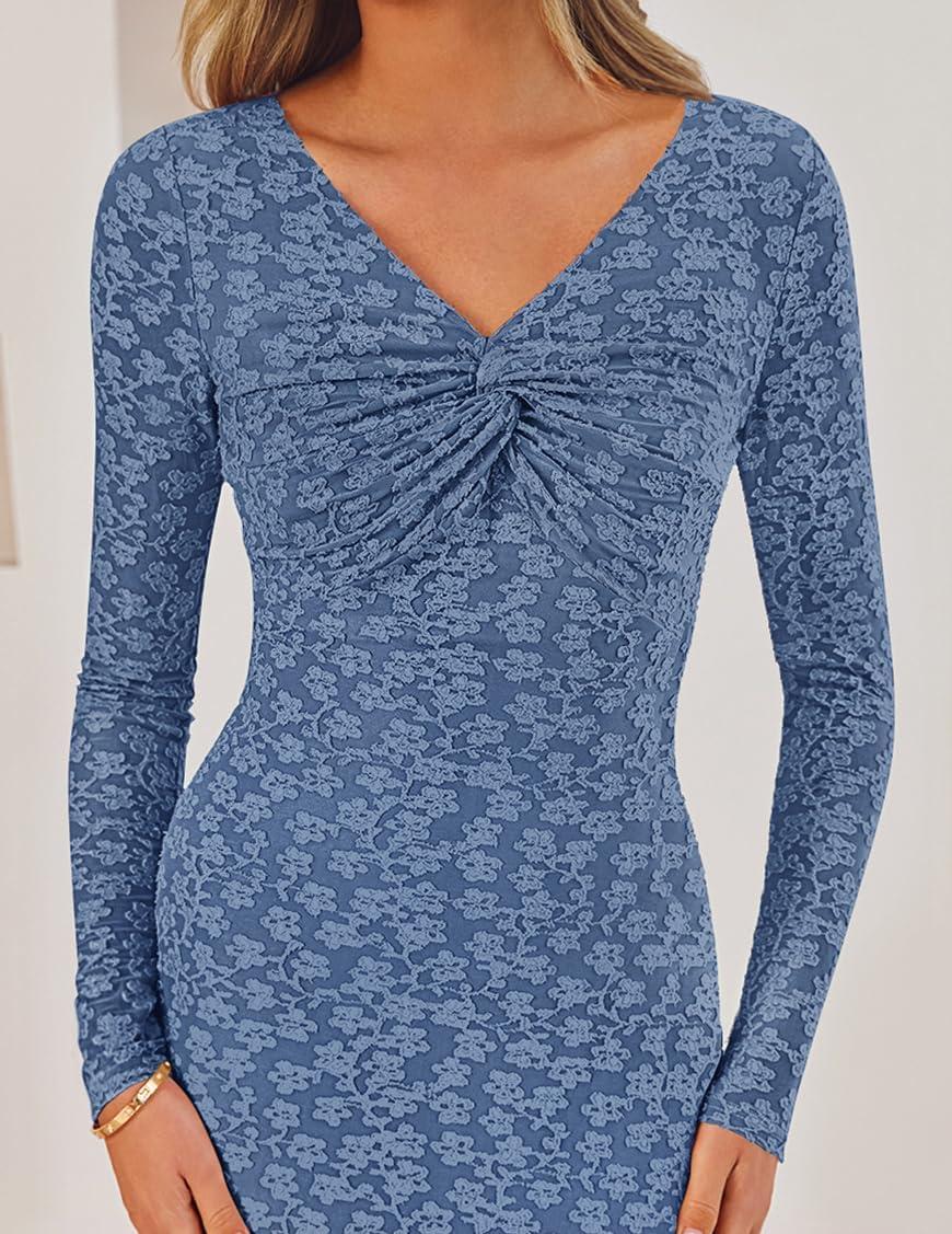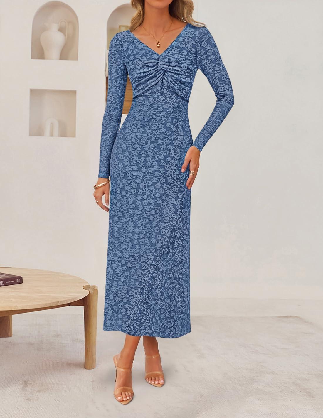 ZESICA Women’s Fall Floral Long Sleeve Bodycon Dress 2025 Elegant V Neck Cocktail Party Long Midi Dresses(Dustyblue)