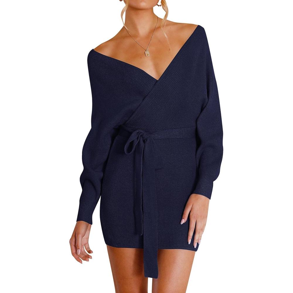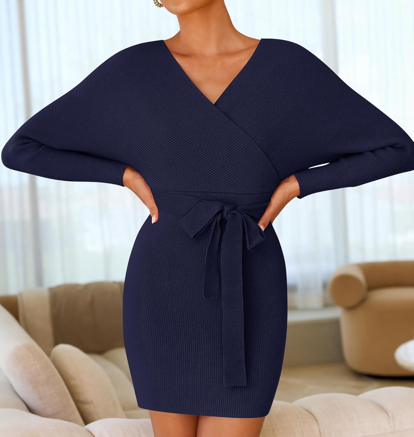 Discover the latest ZESICA Women’s Fall Long Batwing Sleeve Wrap V Neck Knitted Backless Bodycon Pullover Sweater Dress with Belt(Navy) from and take advantage of our limited-time introductory offer.
