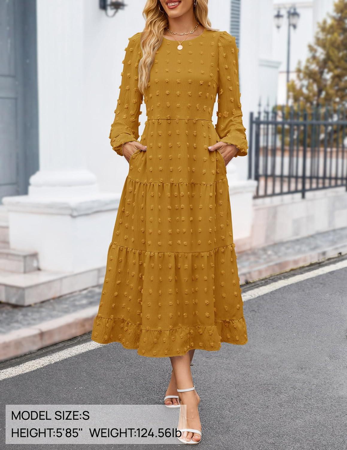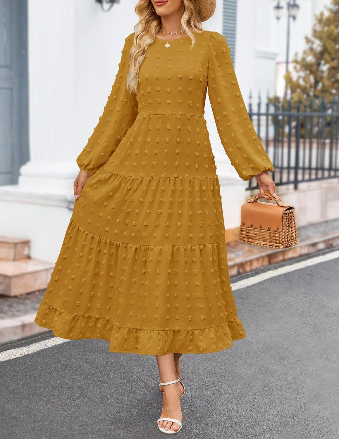 Get up to 60% off on ZESICA Women’s Fall Long Sleeve Maxi Dresses 2025 Crew Neck Swiss Dot Tiered Flowy A Line Casual Boho Party Dress(Mustard) styles during our winter sale event.