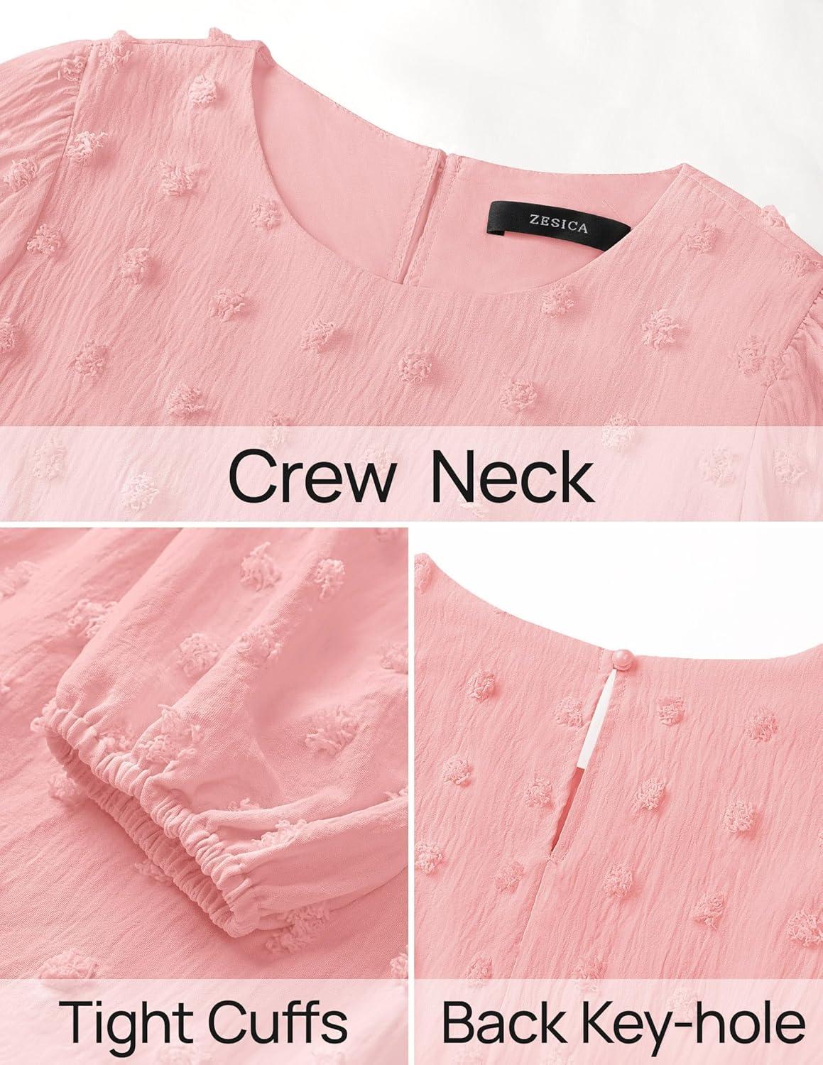 imageZESICA Womens Fall Long Sleeve Maxi Dresses 2025 Crew Neck Swiss Dot Tiered Flowy A Line Casual Boho Party DressPink