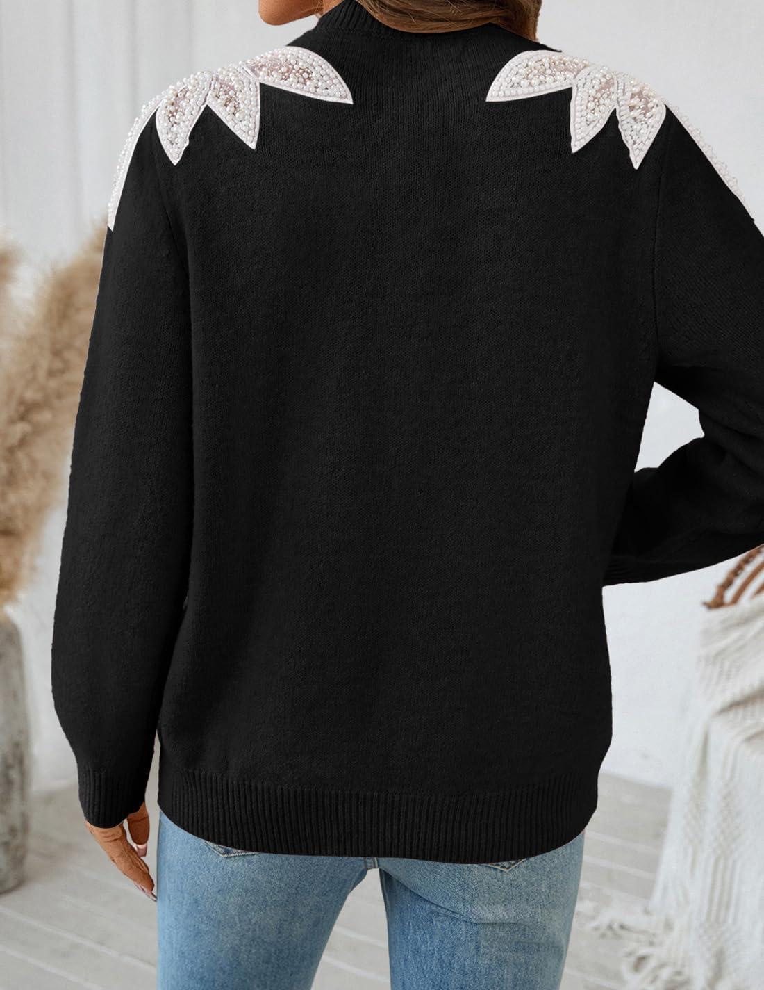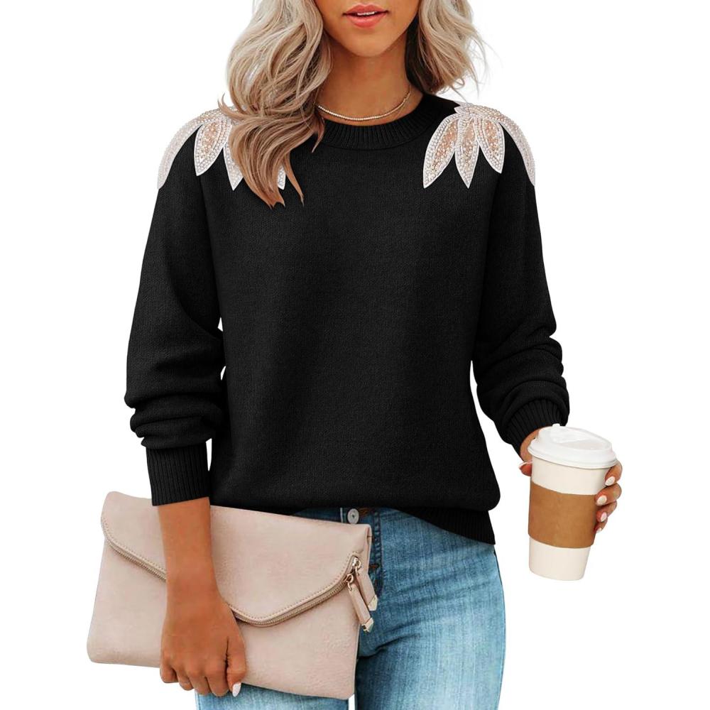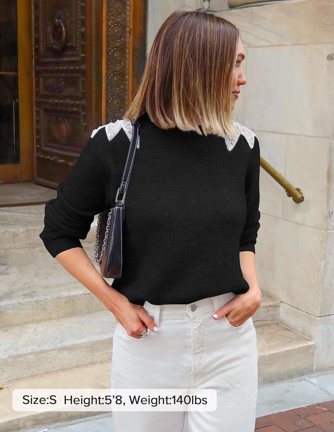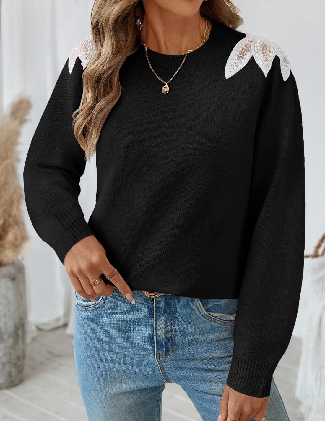 ZESICA Women’s Fall Long Sleeve Sweaters 2025 Crew Neck Knit Loose Dressy Pullover Tops Winter Trendy Outfits(Black)