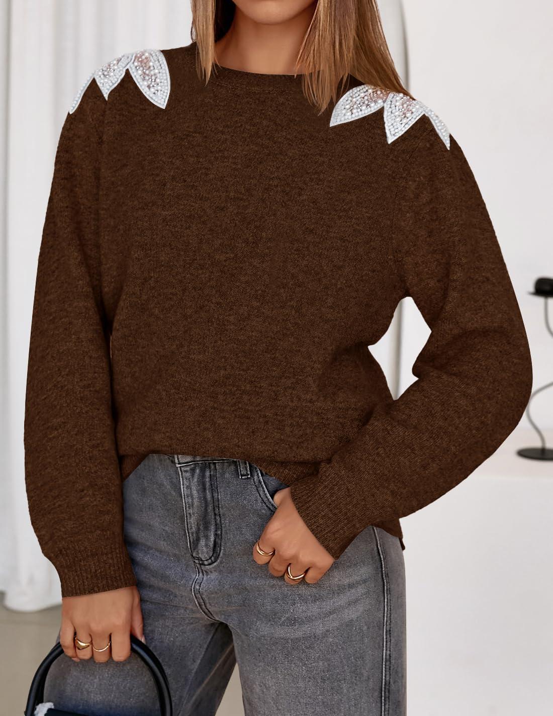 ZESICA Women's Fall Long Sleeve Sweaters 2025 Crew Neck Knit Loose Dressy Pullover Tops Winter Trendy Outfits(Caramel)