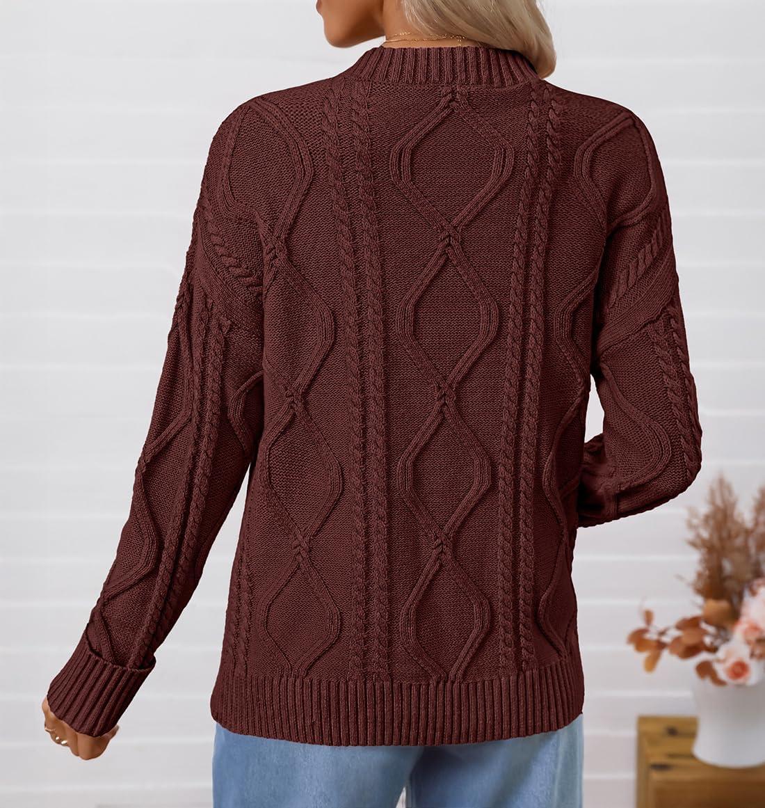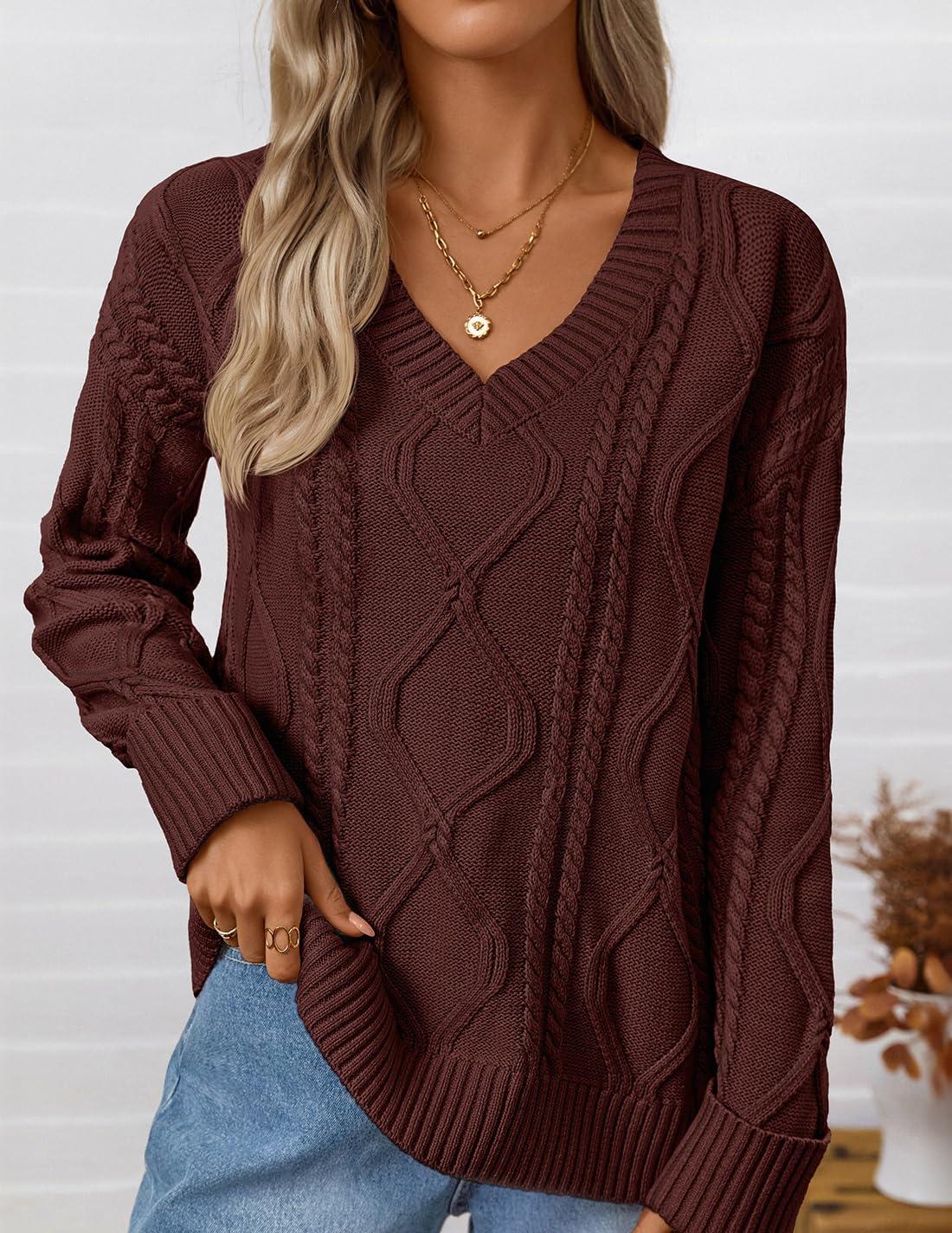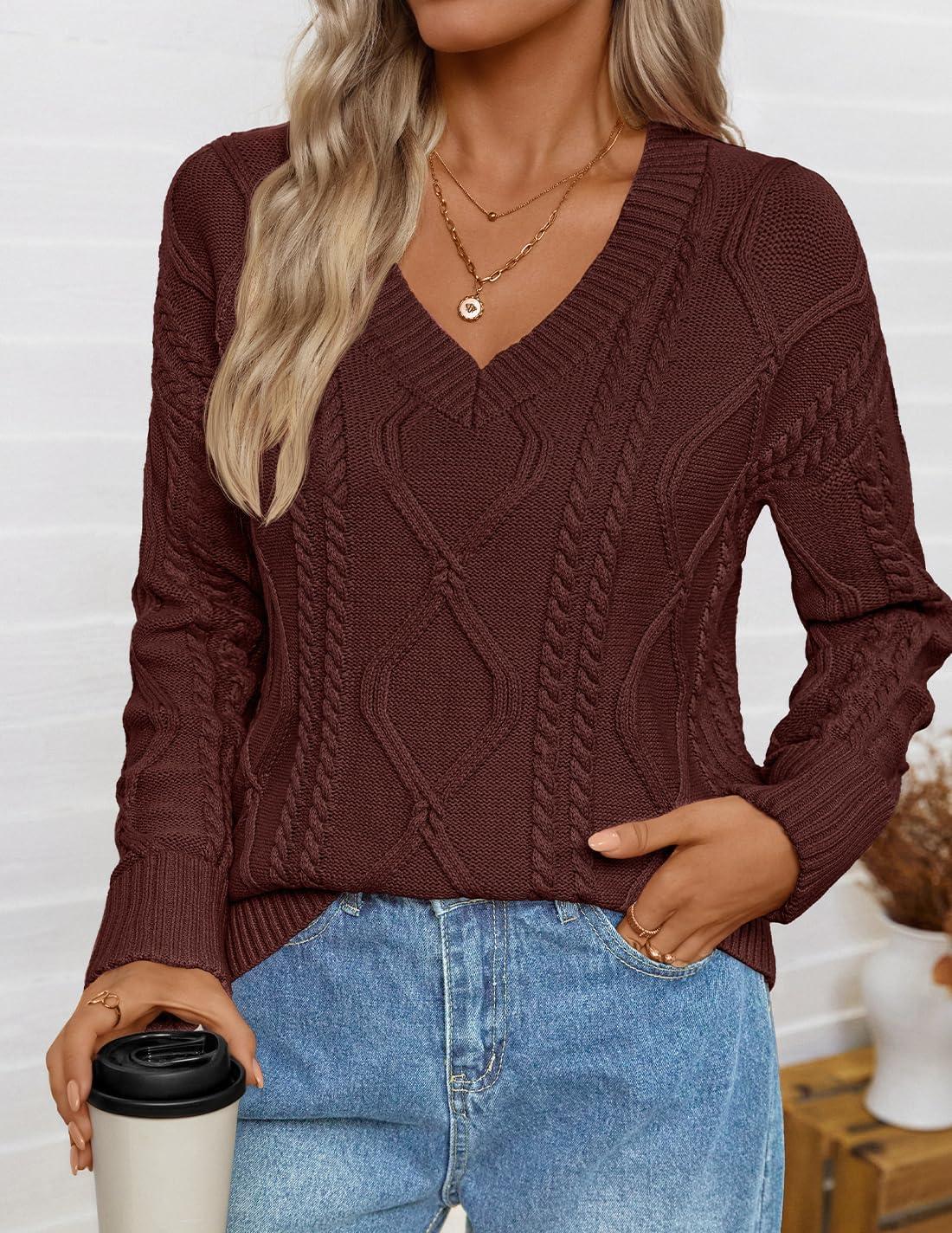 ZESICA Women’s Fall Oversized Sweaters 2025 Casual Long Sleeve V Neck Cable Knit Trendy Pullover Tops(Brown)