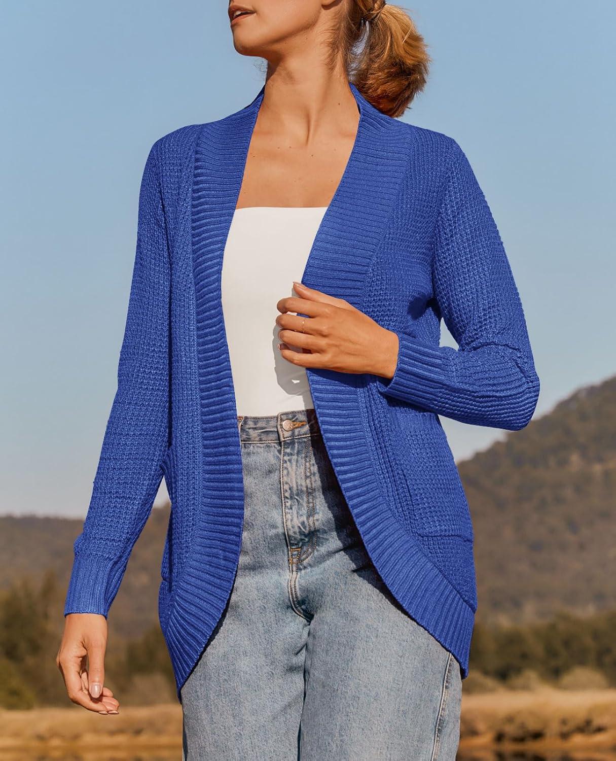 ZESICA Women's Fall Winter 2025 Long Sleeve Open Front Casual Lightweight Soft Knit Cardigan Sweater Outerwear(Blue)
