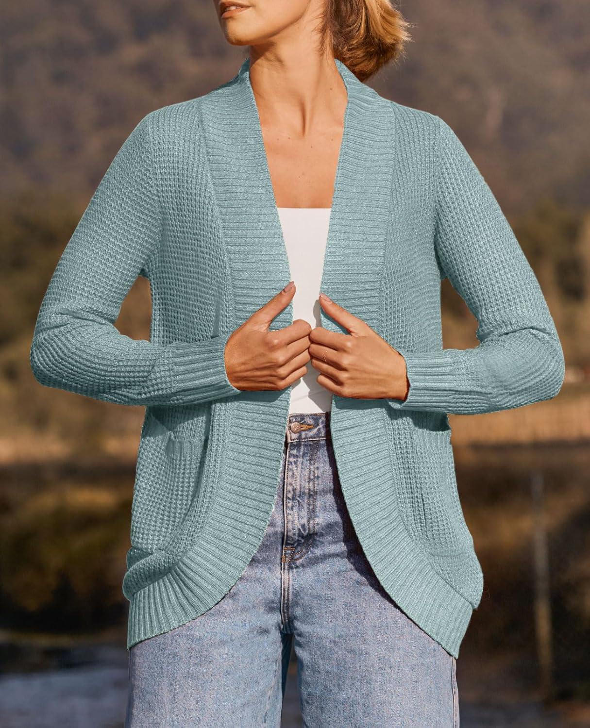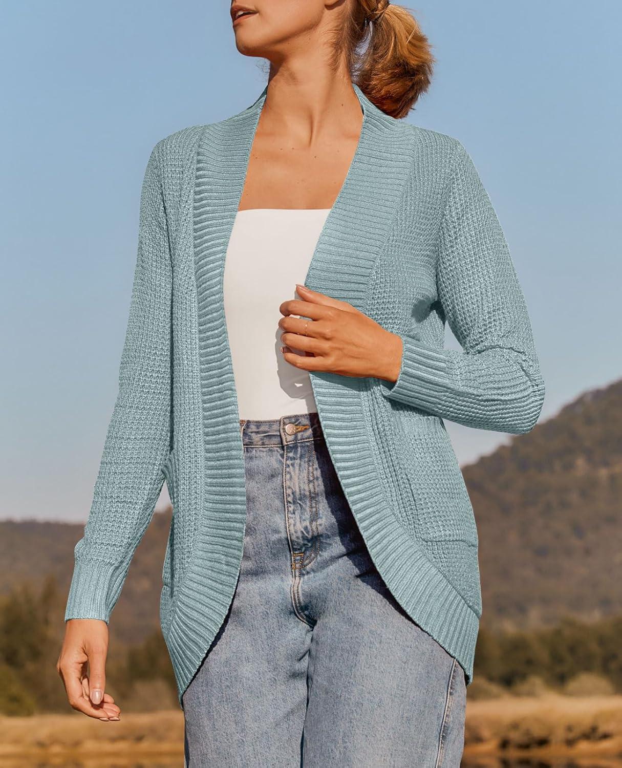 ZESICA Women's Fall Winter 2025 Long Sleeve Open Front Casual Lightweight Soft Knit Cardigan Sweater Outerwear(Mint)
