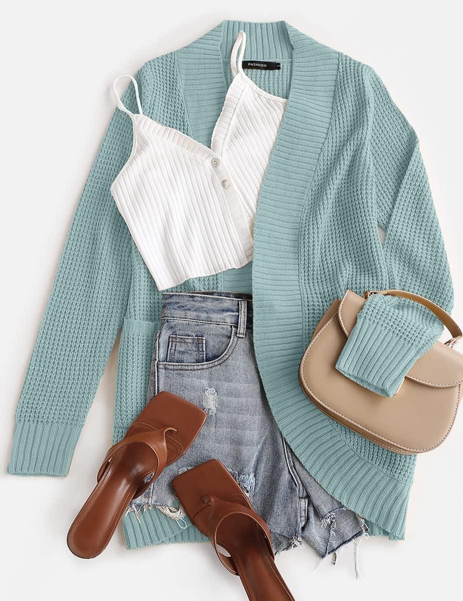 imageZESICA Womens Fall Winter 2025 Long Sleeve Open Front Casual Lightweight Soft Knit Cardigan Sweater OuterwearMint