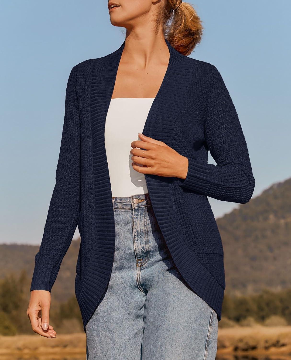ZESICA Women's Fall Winter 2025 Long Sleeve Open Front Casual Lightweight Soft Knit Cardigan Sweater Outerwear(Navy)