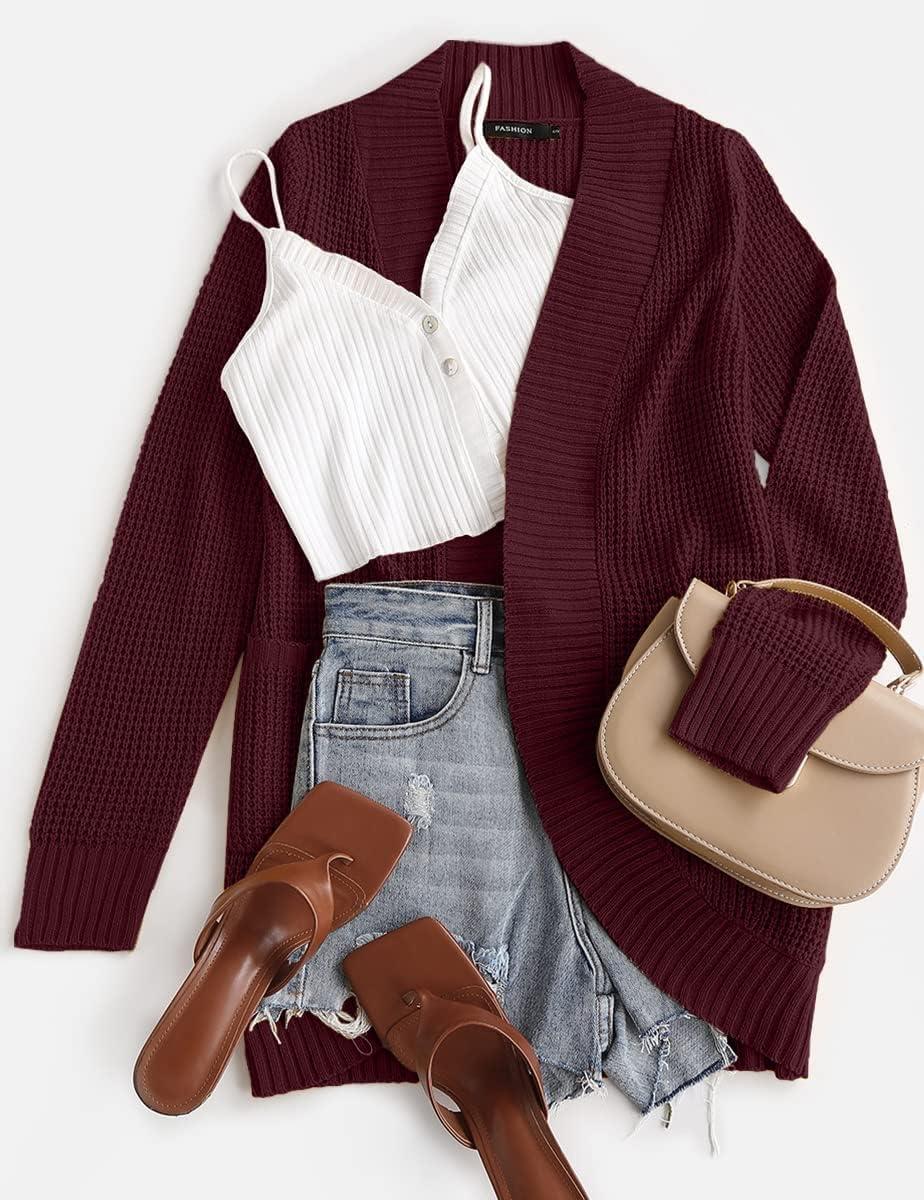 ZESICA Women's Fall Winter 2025 Long Sleeve Open Front Casual Lightweight Soft Knit Cardigan Sweater Outerwear(Wine)