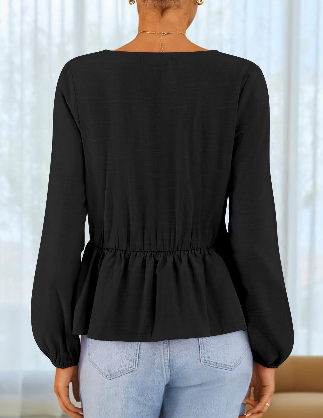 Be the first to review “ZESICA Women’s Long Sleeve Babydoll Tops Crewneck Tie Front Casual Loose Ruffle Flowy Peplum Shirts 2025 Fall Blouses(Black)”