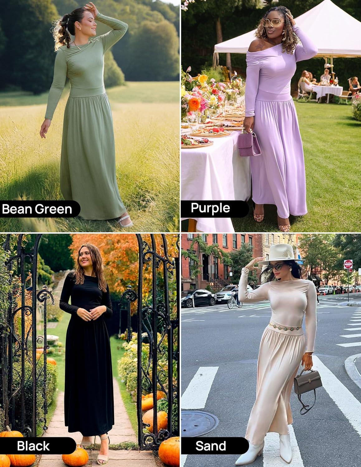 Be the first to review “ZESICA Women’s Long Sleeve Fall Maxi Dress 2025 Crewneck Knit Casual Slim Swing Pleated Dresses with Pockets(Purple)”