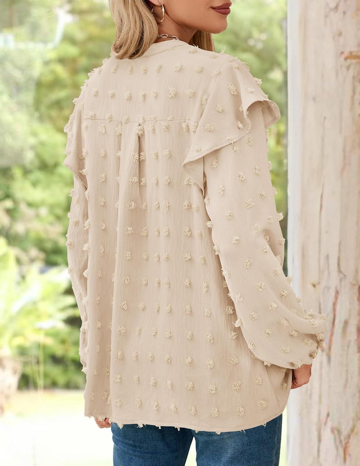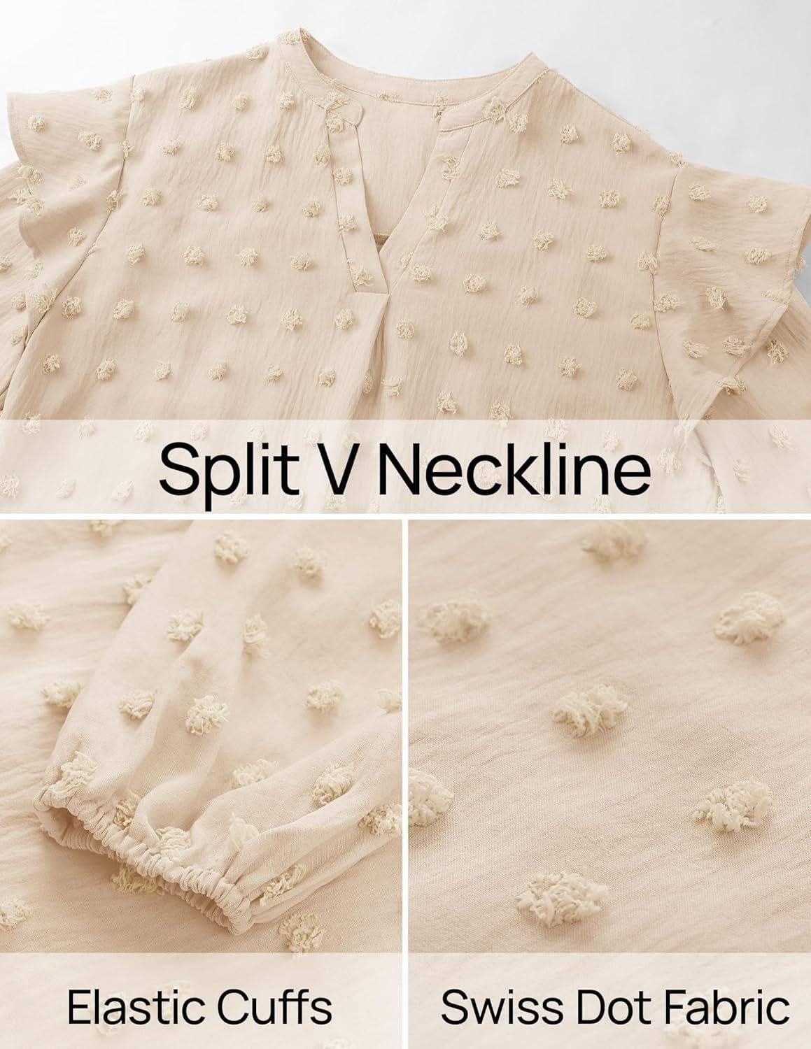 ZESICA Womens Ruffle Long Sleeve Chiffon Blouses V Neck Swiss Dot Fall Shirts Dressy Casual Tunic Tops(Apricot)