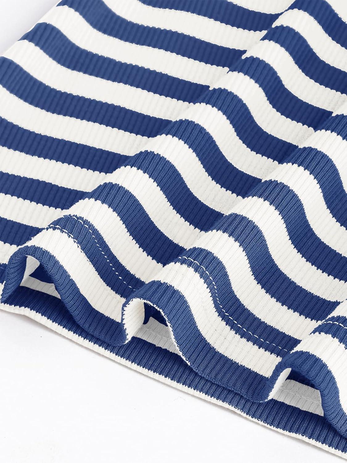 ZESICA Women’s Ruffle Short Sleeve Striped T Shirts Summer Scoop Neck Slim Fitted Causal Basic Tee Tops(Blue)