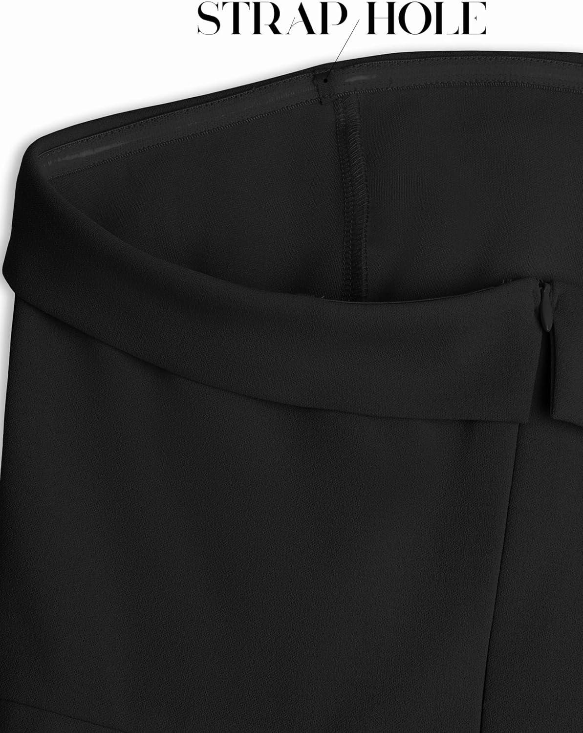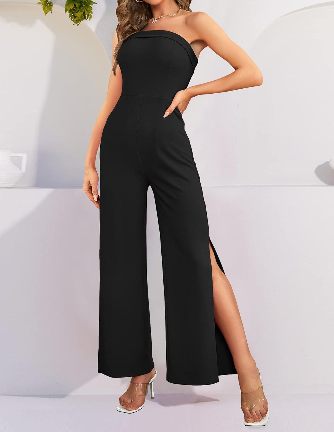 ZESICA Women’s Strapless Jumpsuit Casual Off Shoulder High Waist Wide Leg Side Slit Long Romper Playsuits with Pockets(Black)