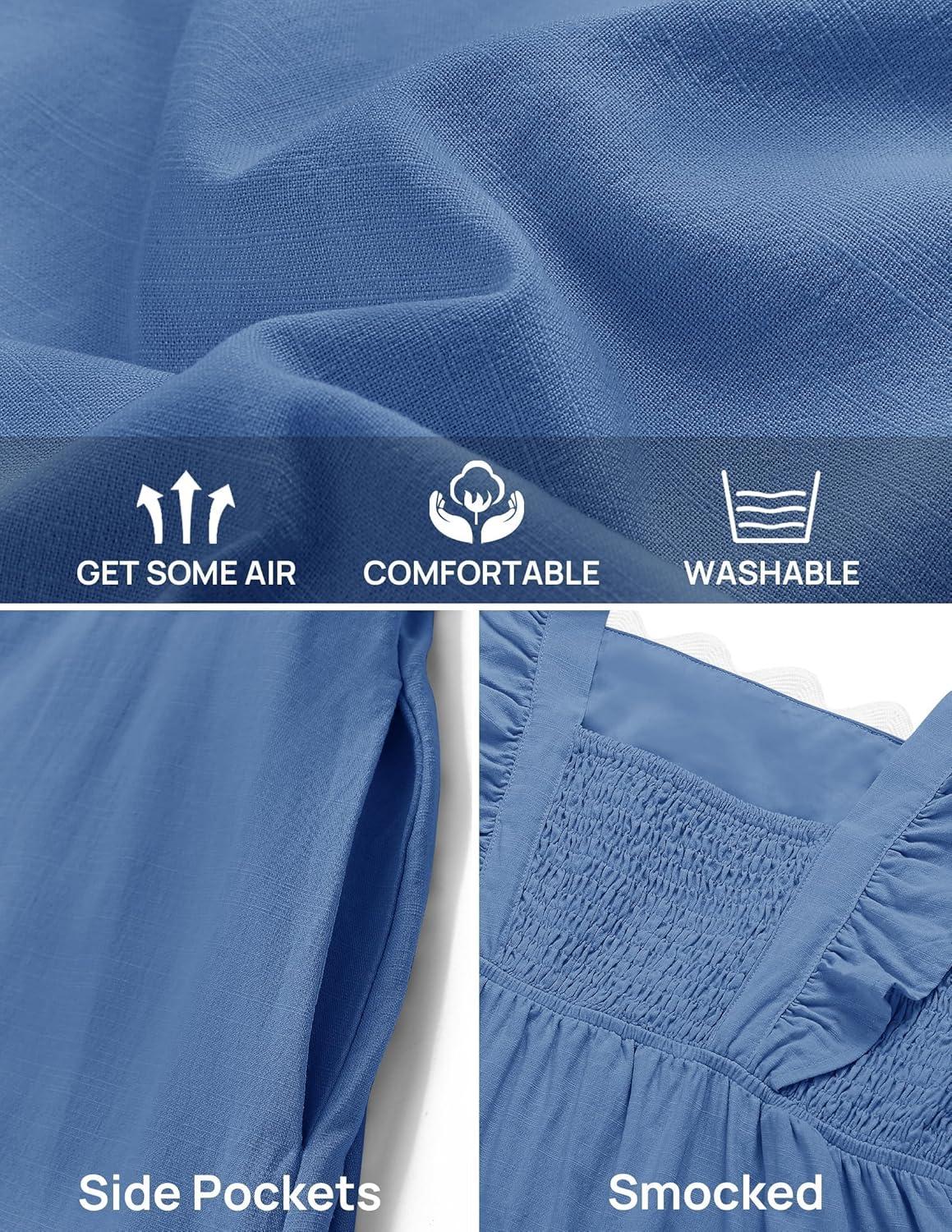 imageZESICA Womens Summer Sleeveless Ruffle Dresses Square Neck Backless Boho Flowy Maxi Sundress with PocketsBlue