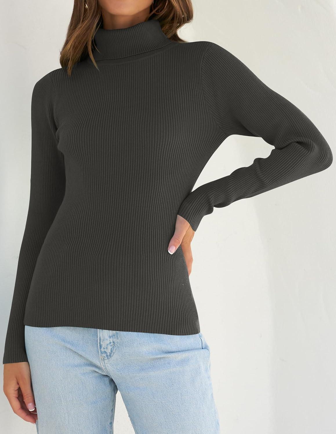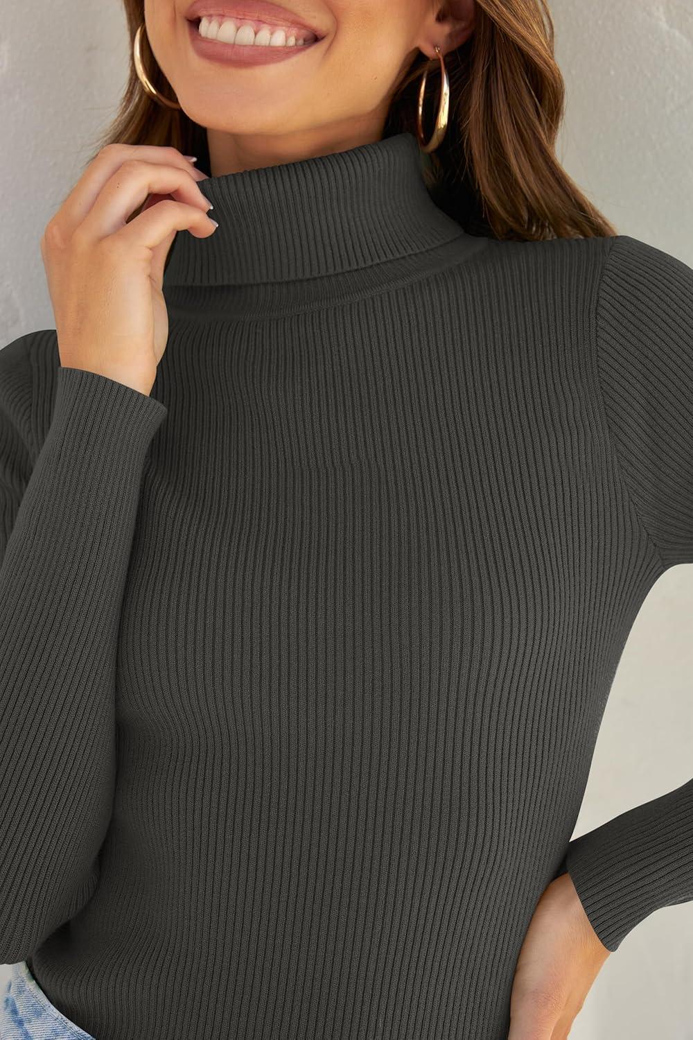 ZESICA Women's Turtleneck Long Sleeve Shirts 2025 Fall Trendy Tops Slim Fitted Ribbed Knit Basic Casual Sweater(Charcoal)