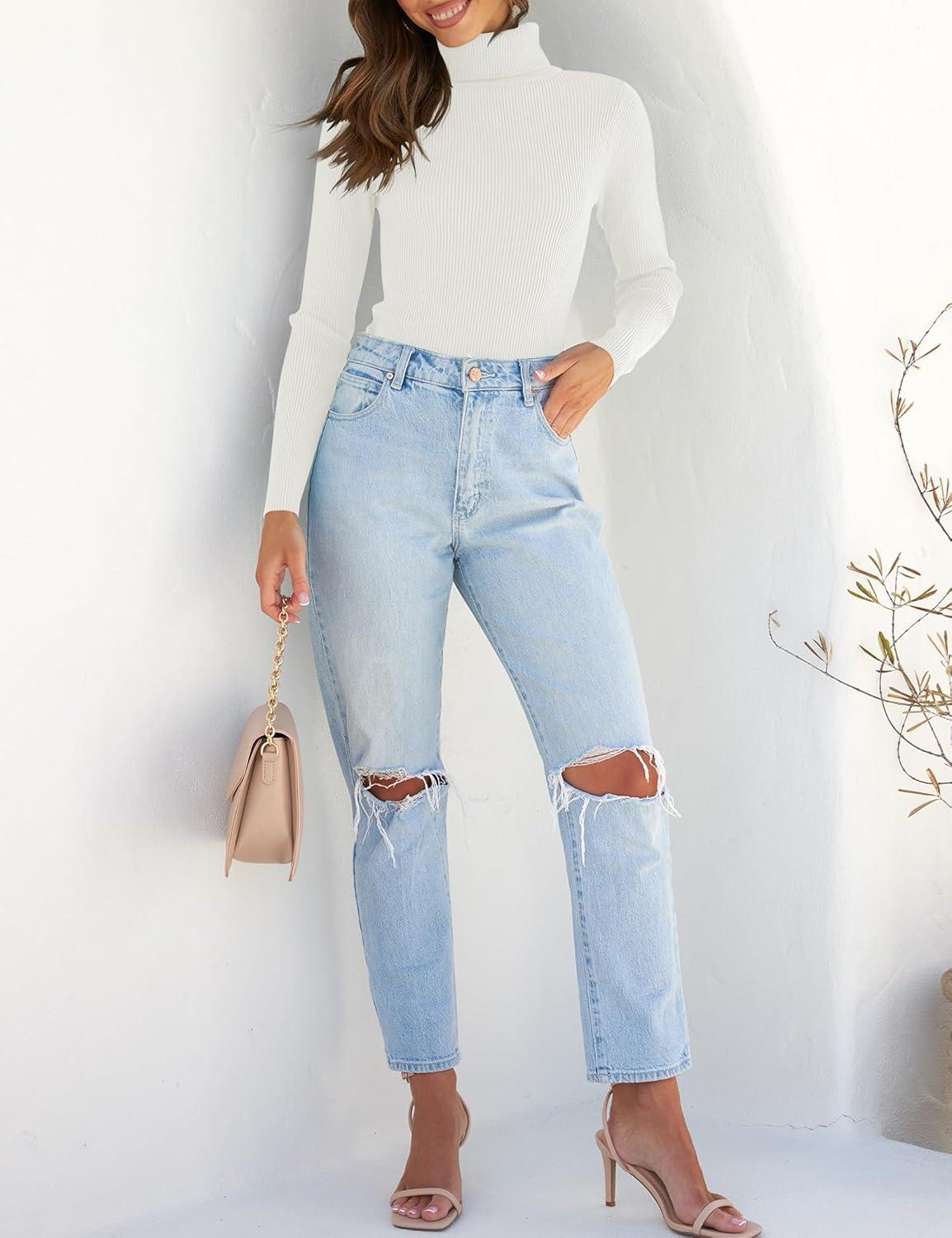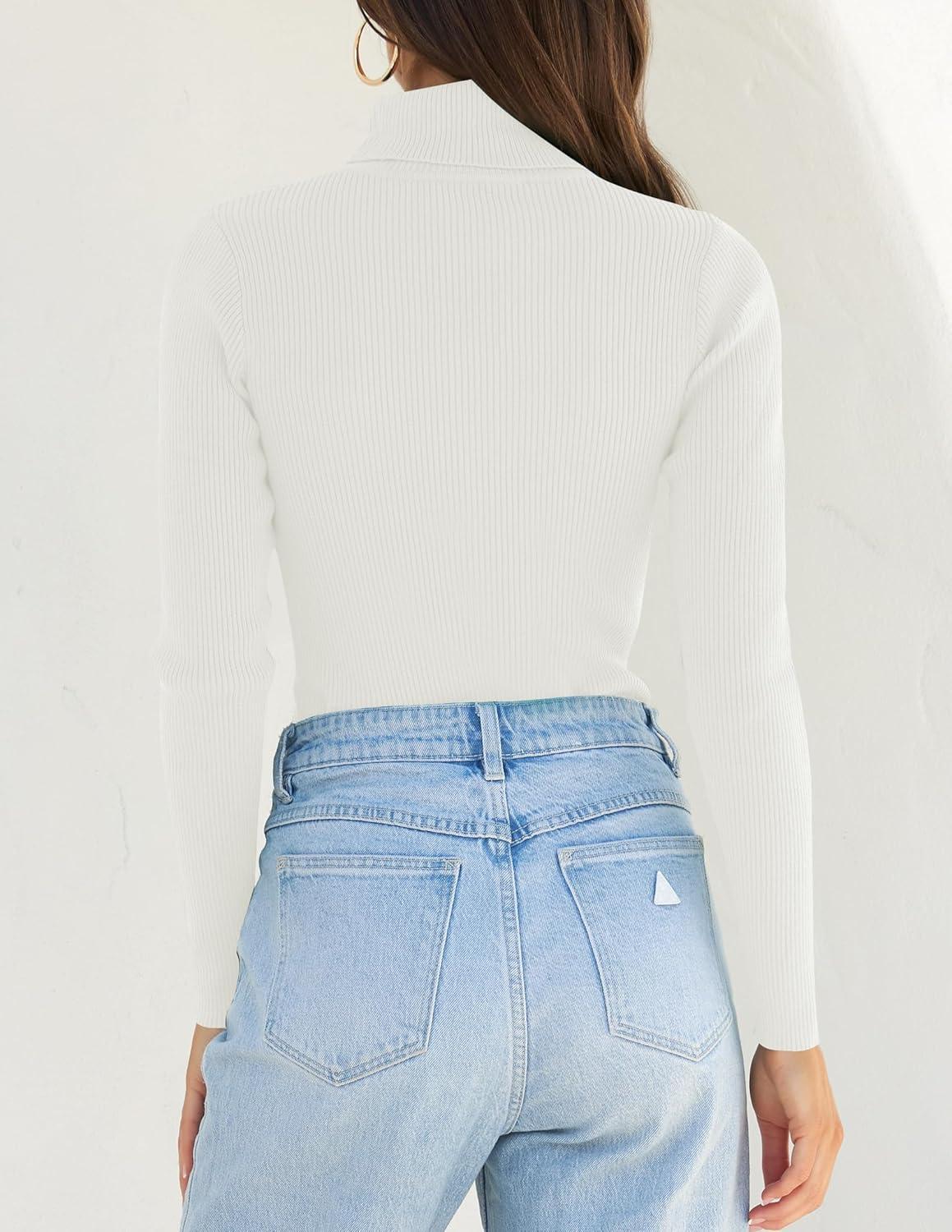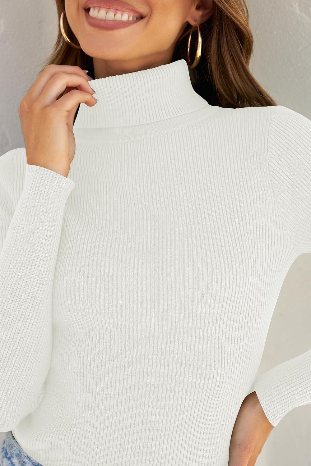 ZESICA Women's Turtleneck Long Sleeve Shirts 2025 Fall Trendy Tops Slim Fitted Ribbed Knit Basic Casual Sweater(White)