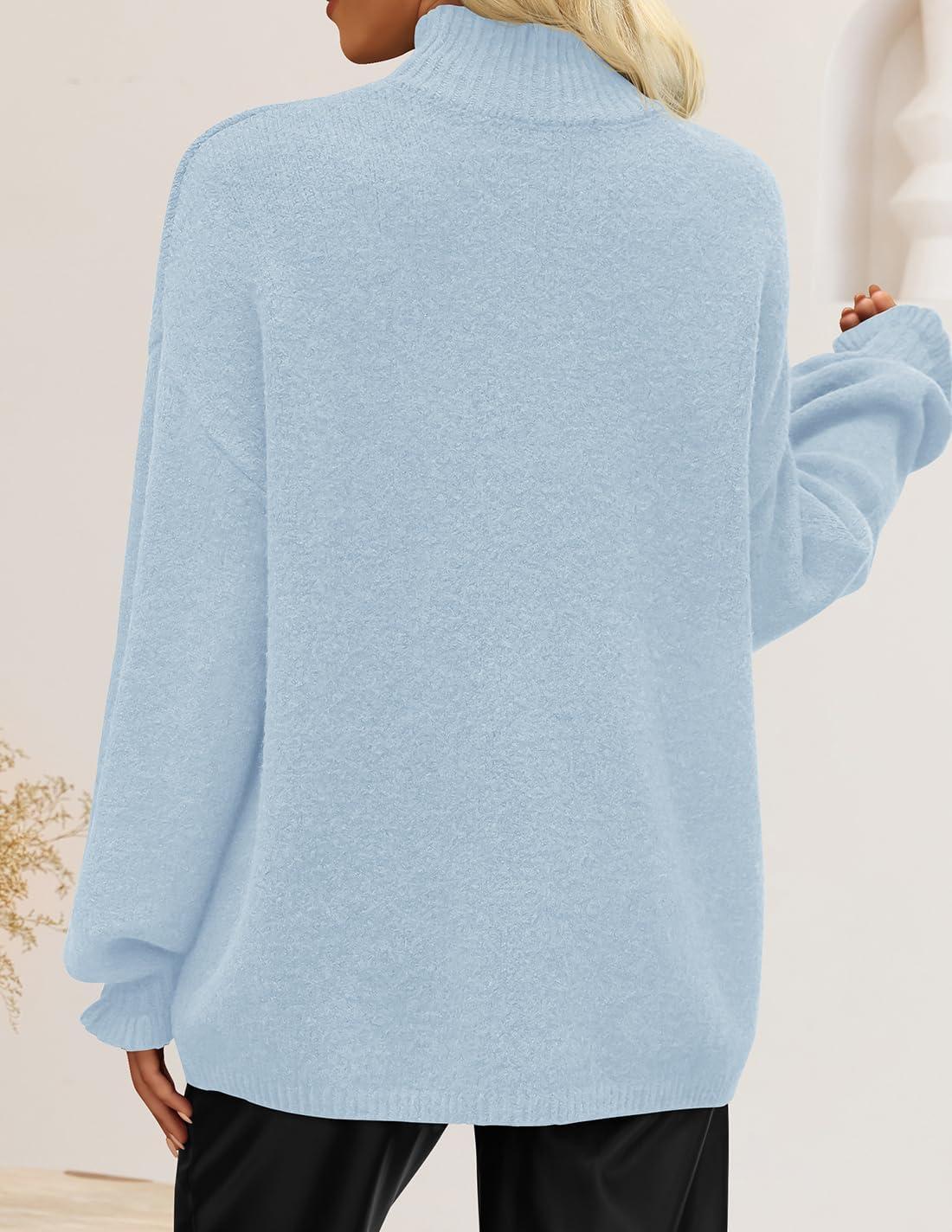ZESICA Women’s Turtleneck Sweaters Dressy Casual Oversized Long Sleeve Knitted Chunky Pullover Sweater Jumper Tops(Light Blue)