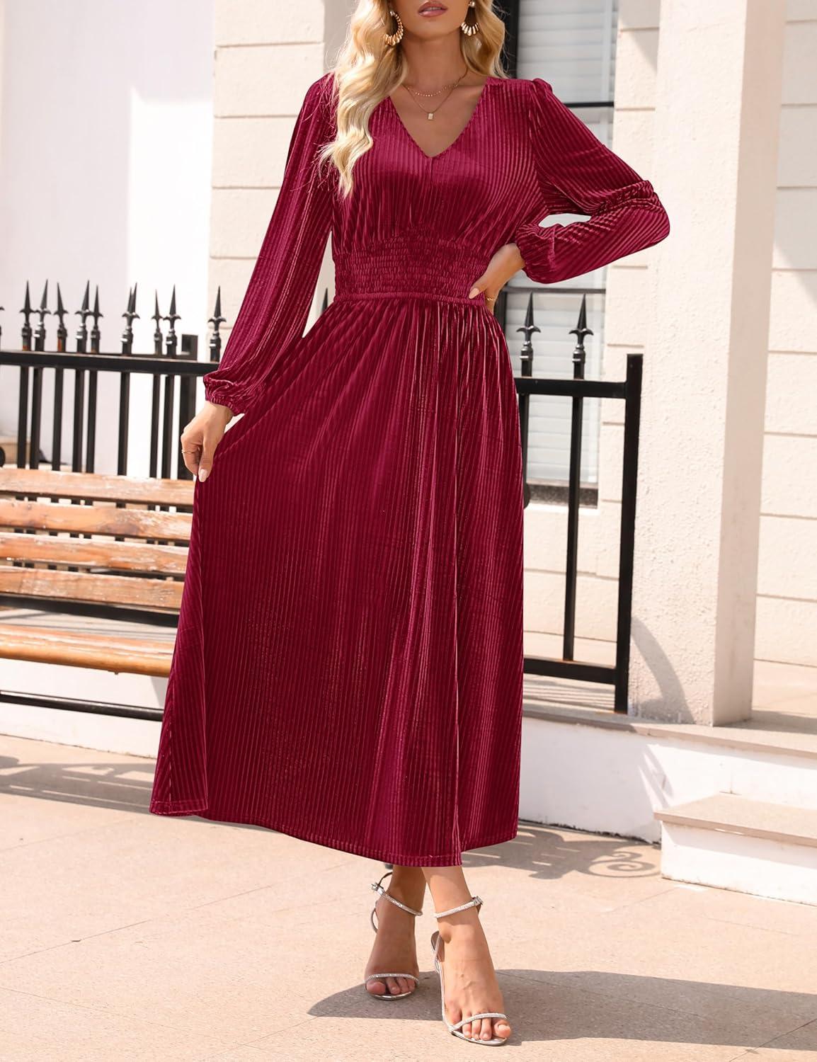 Get the ZESICA Women’s Velvet Midi Dress 2025 Casual V Neck Long Sleeve Solid Color Elastic High Waist Flowy Evening Party Dresses(Wine Red) you want at a price you can afford with our markdown sale.